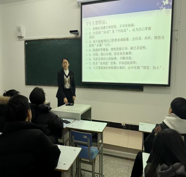 活动现场,生涯导师侯建玲向同学们介绍此次活动内容以及活动目的,以深入浅出的讲解,剖析了不同人格类型在工作中的优势与挑战。对于九型人格各个人格的主要特征以及深层恐惧,深层渴望,样貌特质等方面进行了详细的阐述,指导学生如何深刻了解自己属于哪类人格。各位同学表示了解了自己人格的特征。
