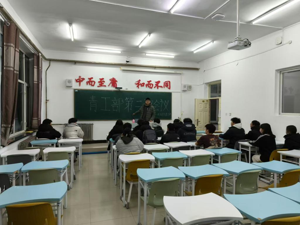 首先,青工部部长任帅同学首先对前期工作进行了全面回顾与总结,肯定了部门在组织志愿服务活动、等方面取得的阶段性成果,同时也针对志愿活动执行过程中出现的人员调配等问题进行了深刻剖析,并提出切实可行的改进措施,为后续工作的高效开展积累经验。其次,在工作部署环节,新的任务规划有序展开。为契合学校人才培养目标与学生成长需求,青工部将策划一系列特色鲜明的社会实践项目。同时,进一步拓展与校外社区的交流沟通,为学生搭建更广阔的志愿服务平台。最后,青工部部长任帅又向各位青工委员讲解了学校在志愿活动中的具体要求,并且着重强调想要入团的同学需要29志愿小时数,顺利毕业需要80志愿小时数。