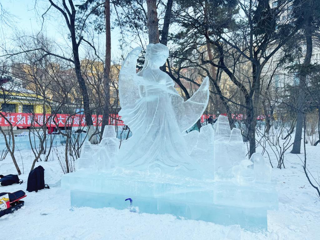 赛前,辛明明老师为学生们进行了冰雕基本知识和雕刻技法的培训,并强调了工具使用的安全规范。她们不畏严寒,用心雕琢,创作出了一幅形态各异、立意深刻的冰雕艺术作品《嫦娥奔月》,并在比赛中取得佳绩,其作品充分展现了大学生的艺术功底和创作能力。比赛不仅为学生们提供了一个展示自我的平台,还促进了冰雪艺术的发展和冰雪文化的传承。