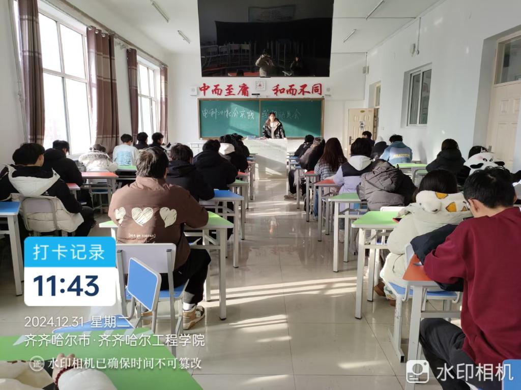 12月31日上午,电科241班在一教A区1405教室召开社会实践学期动员会。本次会议由班长刘海鸽主持。电科241班共55人参加。