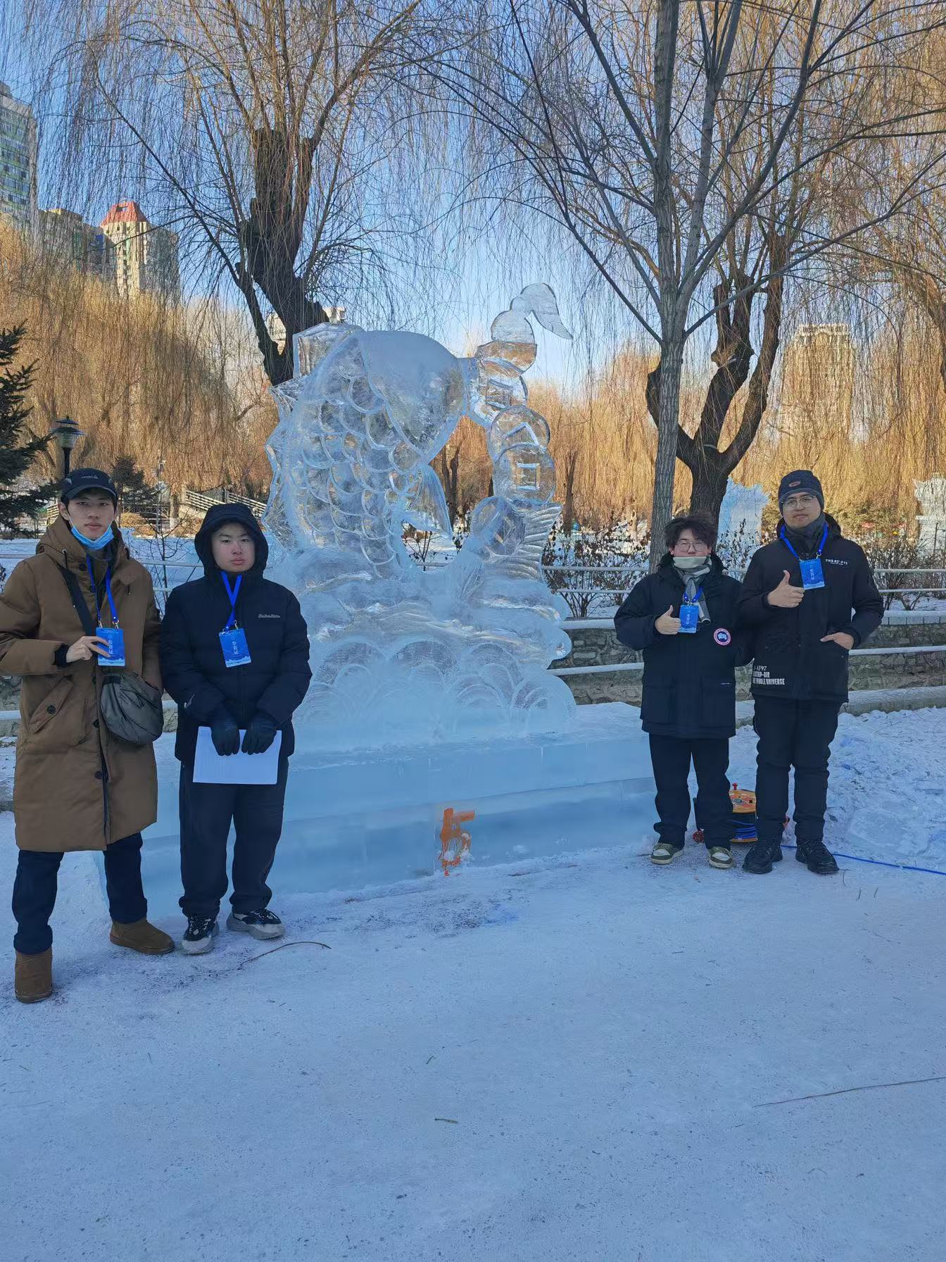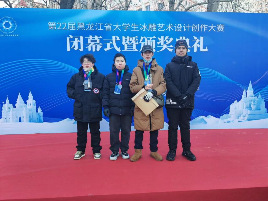 1月9日下午,由黑龙江省教育厅主办、省艺术设计协会冰雪雕艺术分会以及哈尔滨冰灯艺术游园会协办的第二十二届黑龙江省大学生冰雕创作大赛正式落下帷幕。此次比赛参赛队伍包含省内各高校参赛队伍。参赛队伍达60余支,共240余人参加此次比赛。我校视觉传达设计专业学生朱可心、饶焓、王玺鸣在辛明明老师的带领下参加了此次比赛并取得优异成绩。
