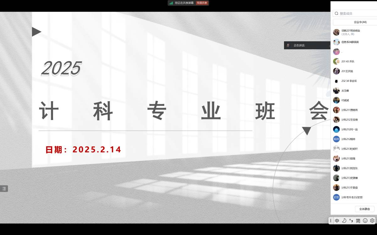 此次班会聚焦毕业关键事项,为同学们的未来发展筑牢根基。2月14日下午,主持人薛苗苗,参会人员计科21级、计科专升本23级全体学生,专业长与辅导员共同开展线上班会。