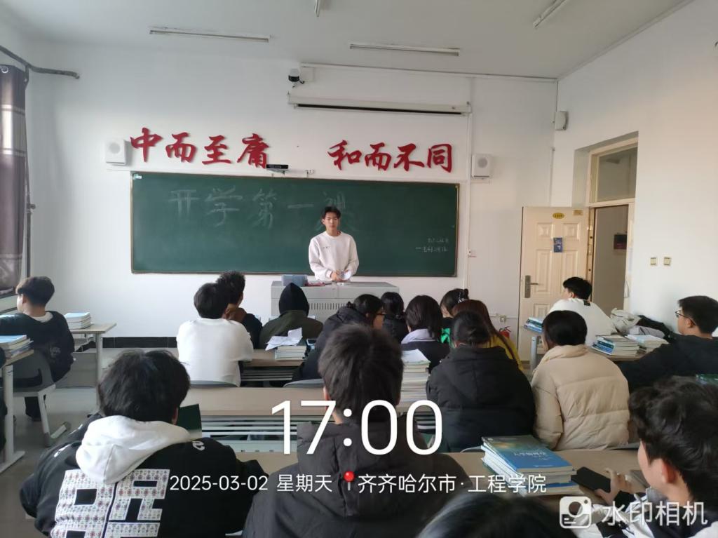本次会议旨在明确同学们的学习目标与方向,加强对同学们的思想教育与引导。首先,刘海鸽同学回顾了上学期班级在学业、活动等方面取得的成绩,对同学们的努力予以肯定,激励大家在新学期接续奋进,再创佳绩。随后,刘海鸽同学结合本学期的课程设置,为同学们梳理了各学科的重点与难点,鼓励大家制定清晰的学习计划,平衡好课堂学习与课后自主学习,积极参与学术讨论和实践活动,培养创新思维与解决问题的能力。最后,安全教育是此次开学第一课的重要内容。刘海鸽同学细讲解了校园安全、网络安全、人身财产安全等方面的知识,列举电信诈骗、网络陷阱等常见案例,提醒同学们增强防范意识,保护好个人信息与财产安全。