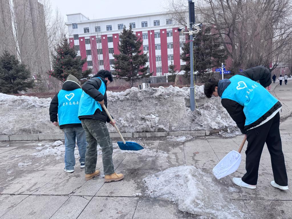 首先,由青工委员和组织委员为大家发志愿者服装和工具,其次在活动中,同学们热情高涨,他们分工合作,有的负责清扫人行道上的积雪,有的则清理教学楼前的台阶。尽管天气寒冷,但大家都积极工作,他们用实际行动诠释了“奉献、友爱、互助、进步”的志愿服务精神。活动结束后,同学们纷纷表示,会继续参加志愿活动。