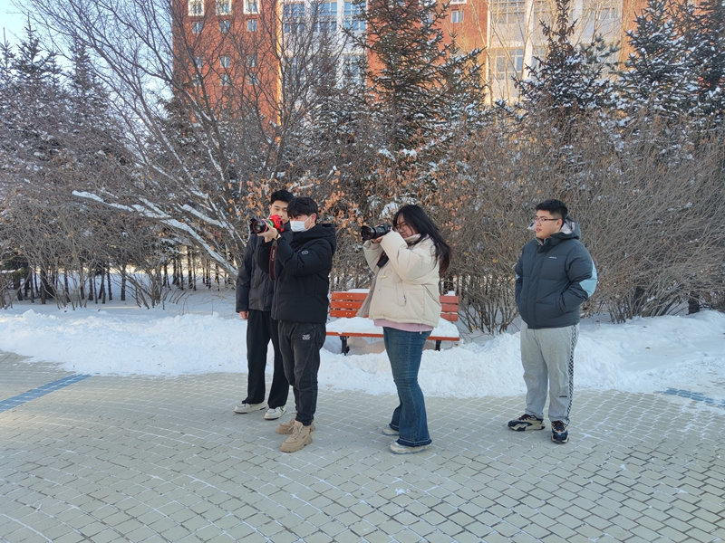 同学们满怀热情,手中的相机快门声此起彼伏,像是在奏响一曲冬日的乐章。计算机科学与技术专业的同学,平日里更多与代码和算法打交道,此刻却沉浸在光与影的艺术世界里,他们尝试运用所学的逻辑思维,去分析构图的合理性,力求拍出具有层次感的雪景照片。而视觉传达设计专业的同学,则充分发挥自己的审美优势,关注细节、色彩搭配,用镜头捕捉那些容易被忽视的唯美瞬间,将雪的纯净、校园的活力展现得淋漓尽致。