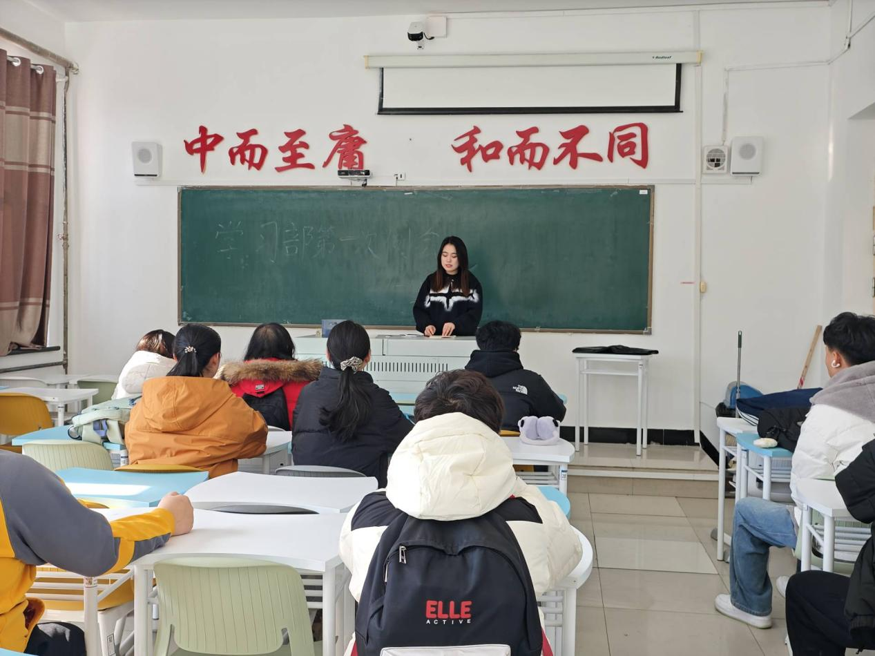 会议伊始,学习部部长侯蕊首先向成员表示了热烈的欢迎。她回顾了学习部过去的成绩,提到了学习部成员期末成绩问题,批评了学习部成员在成绩方面不足的问题,强调了大家需要认真对待考试并再下次考试中取得较为优异成绩。随后,部长详细阐述了本学期学习部的工作计划。重点包括将开展的会议以及举办的活动,为将来的会议以及活动做好充分的准备,以此更好地高效展开会议以及活动。此外,在组织架构和成员分工方面,部长明确了各成员的主要职责。每组成员被分配到了与活动策划组织、写会议报道或宣传学校的视频等相关的任务,确保各项工作有条不紊地进行。