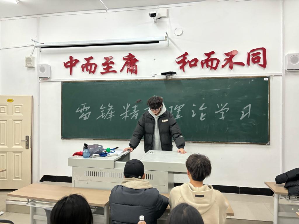 首先,宋宇豪同学通过播放一段生动的雷锋事迹纪录片,带领同学们走进雷锋的世界。纪录片中,雷锋同志无私奉献、助人为乐的一个个鲜活事例,让同学们对雷锋精神有了更为直观的认识。随后,宋宇豪同学结合历史背景和现实意义,深入浅出地讲解了雷锋精神的内涵,包括热爱党、热爱祖国、热爱社会主义的崇高理想和坚定信念,服务人民、助人为乐的奉献精神,干一行爱一行、专一行精一行的敬业精神,锐意进取、自强不息的创新精神,艰苦奋斗、勤俭节约的创业精神等。最后,同学们分享了自己在生活中践行雷锋精神的点滴小事,如帮助同学解决学习难题、参与社区志愿服务活动等。