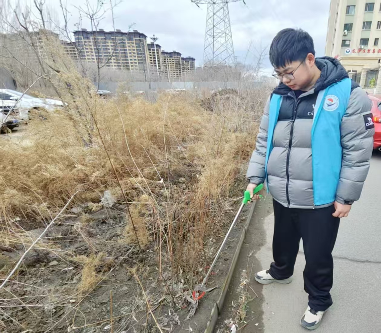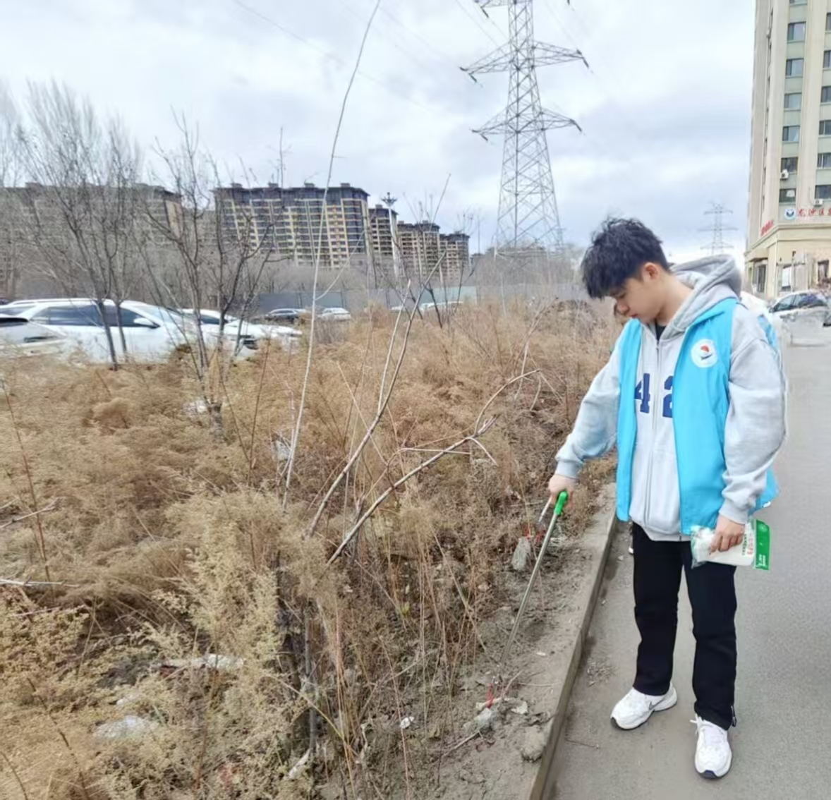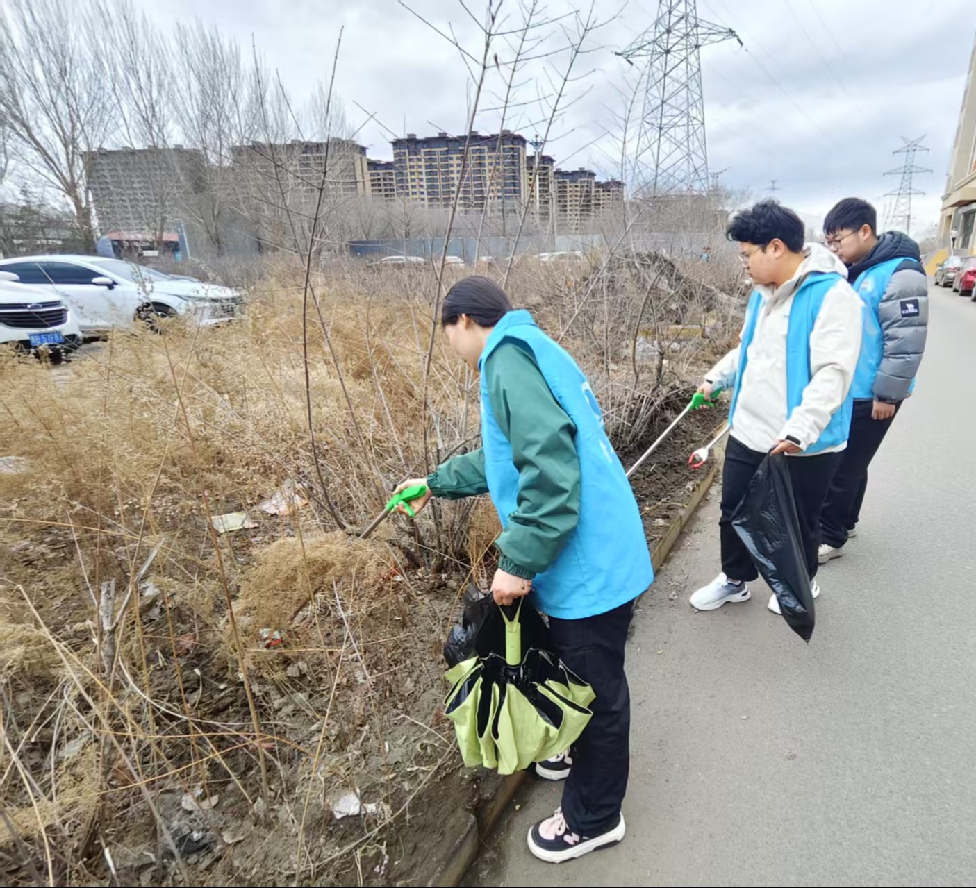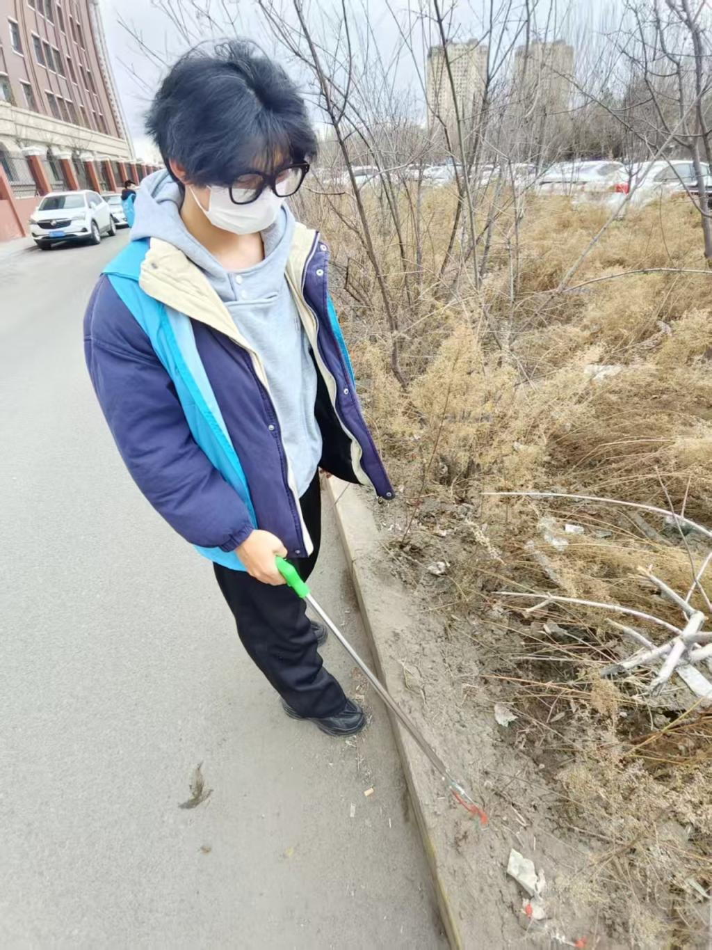 活动期间,同学们首先一起到华光社区地点集合进行签到打卡,分发夹子和垃圾袋。然后一同到清理区域,有的负责清扫路面垃圾,有的深入绿化带捡拾废弃物,有的对居民日常出行随手丢弃的纸屑、烟头、食品包装袋等白色垃圾进行全面清理。同学们不放过任何一个角落,齐心协力,仔细捡拾纸屑、垃圾袋等放进垃圾袋 ,一道道蓝马甲穿梭在各个角落,形成了一道亮丽的风景线。最后增强了同学们的环保意识,有助于同学们养成今后不再随意丢弃垃圾,保护环境的好习惯 。