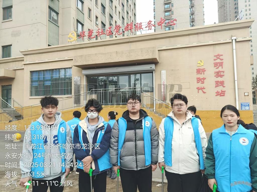 3月21日下午,大数据221班刘乐乐、方肖康、林泽明、郭长青、韩明硕等25名同学参加龙沙区华光社区党群服务中心开展“志愿于心 奉献于行”志愿服务,以实际行动传承雷锋精神、弘扬时代新风。