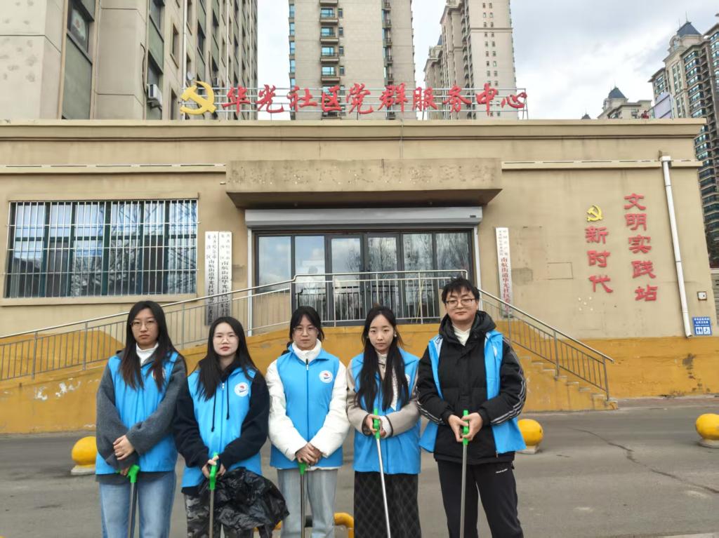 活动当日,同学们早早来到华光社区指定地点集合,签到打卡后,领取了夹子和垃圾袋等清洁工具。随后,大家迅速奔赴清理区域,有序开展志愿服务工作。在清扫过程中,同学们分工明确又相互协作。有的同学专注于清扫路面上的垃圾,无论是被风吹落的树叶,还是行人丢弃的杂物,都被认真清扫起来;还有的同学负责对居民日常出行道路周边的白色垃圾进行全面清理,哪怕是藏在角落里的纸屑,也没有逃过大家的眼睛。他们身着统一的志愿者服装,穿梭在社区的各个角落,形成了一道亮丽的风景线。