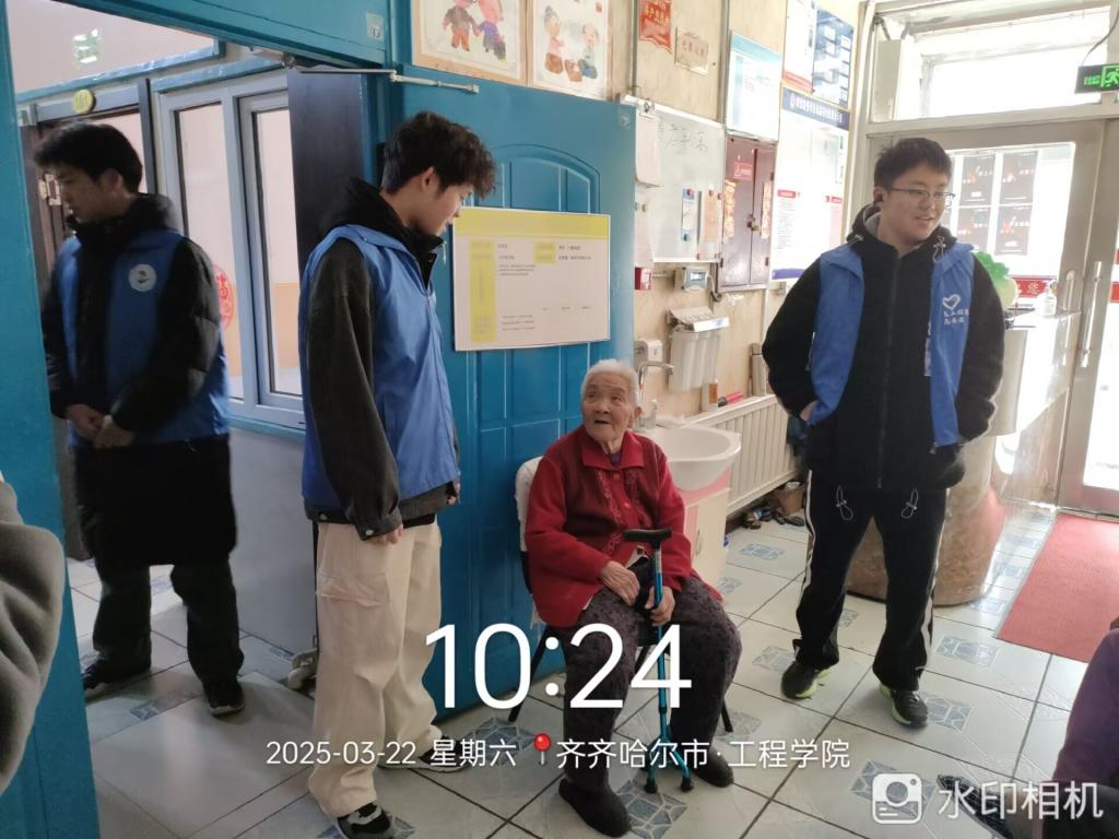 本次活动旨在,鼓励同学们用实际行动诠释新时代的雷锋精神,为老人们送去关怀与温暖。首先,在邵丽群同学的组织下,同学们迅速投入服务工作中。他们为老人们打扫房间、整理内务,将每一个角落都擦拭得一尘不染,让老人们居住的环境更加整洁舒适。随后,为丰富老人们的精神生活,同学们与老人们围坐在一起,亲切地唠家常,耐心倾听他们讲述过去的故事,欢声笑语回荡在整个养老院。有的同学还精心准备了歌曲演唱,老人们听得津津有味,脸上洋溢着幸福的笑容,不少老人也被欢快的氛围感染,参与互动,和同学们一同歌唱,现场气氛其乐融融。最后,邵丽群同学详细询问老人们的身体状况,并给予科学的健康指导和饮食建议。针对一些行动不便的老人,邵丽群同学还贴心地进行床边检查,确保每一位老人都能享受到细致的关怀。