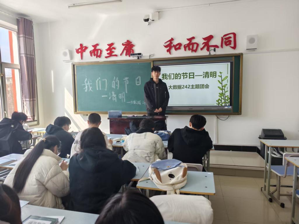 3月27日上午,大数据242班在一号教学楼1309教室召开“我们的节日—清明”主题团会,本次团会由纪检委员王淳主持,大数据242班共37人参加。