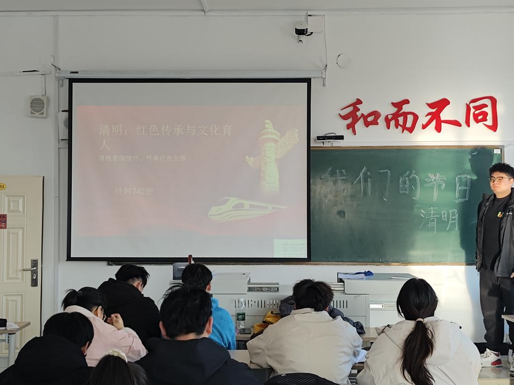 3月28日上午,计科242班于一号教学区1402教室召开“我们的节日--清明”主题班会,此次班会由计科242班团支书王梓吉主持,共20余人参加。