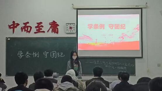 活动中,团支书张林溪同学以“学条例·守初心”为主线,紧扣《中国共产主义青年团纪律处分条例(试行)》六大章节、四十九条内容,逐章带领团员们学习。重点阐释了团员权利义务边界、违纪行为认定标准及处分程序等核心内容,提出作为大学生团员,要时刻牢记使命,严守团章团规。并且在日常学习生活里,更要规范自身言行,积极参与团组织活动,发挥模范带头作用,以实际行动践行团的纪律要求,为团的事业贡献自己的一份力量。