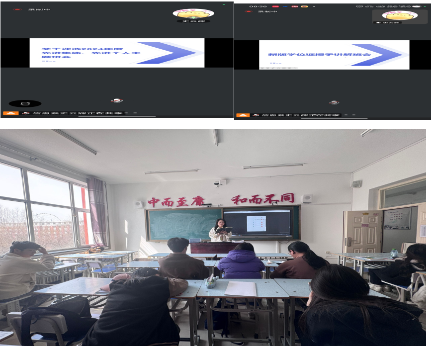 2025年4月9、4月10日,电子商务专业23级、24级于线上、线下成功召开有关新学位证授予及奖项评比事项讲解的主题班会。由史云辉老师针对新学位证授予及奖项评比事项进行讲解,电商23级、24级全体成员参加。