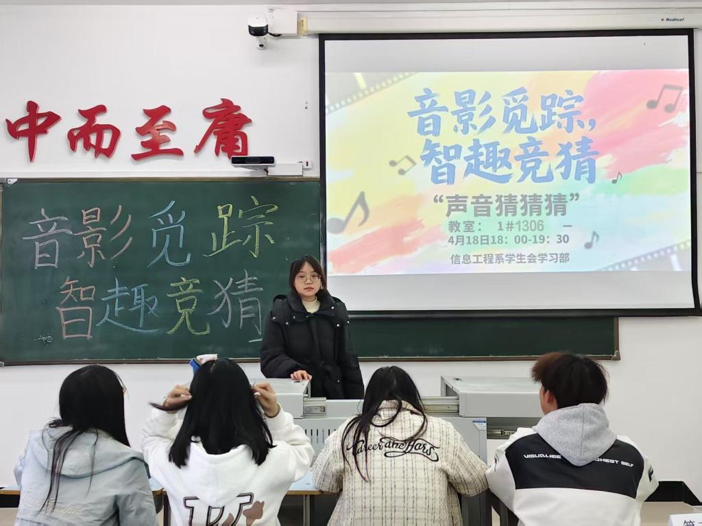 2025年4月18日下午,信息工程系学生会学习部于一号教学楼1306教室召开了音影觅踪,智趣竞猜”声音猜猜猜的活动。本次例会由学习部部员张静主持,参加本次活动的有学习部成员和通过到梦空间报名人员,共计35人。而此活动带领同学们开启了一场别开生面的声音探索之旅。