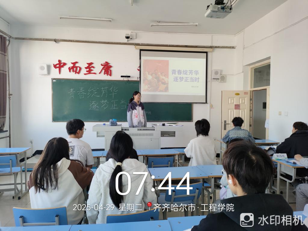 本次会议旨在,引导同学们珍惜青春时光,明确奋斗目标。首先,徐雯萱同学以一段充满激情的致辞拉开帷幕。她强调青春是奋斗的黄金时期,鼓励同学们要敢于做梦、勇于追梦、勤于圆梦。“青春只有一次,当我们回首往事时,不应因虚度年华而悔恨,希望大家都能在青春的舞台上绽放属于自己的光彩。”徐雯萱同学的话语情真意切,引发了同学们的强烈共鸣。随后,班级内展开了热烈的小组讨论。同学们围绕“青春的意义”“如何实现梦想”等话题各抒己见。在思想的碰撞与交流中,大家对青春和梦想有了更深刻的认识。最后,班会还播放了一段励志视频。视频中,不同领域的奋斗者在青春岁月里拼搏奋斗、克服重重困难,最终实现梦想的故事,深深打动了在场每一位同学。