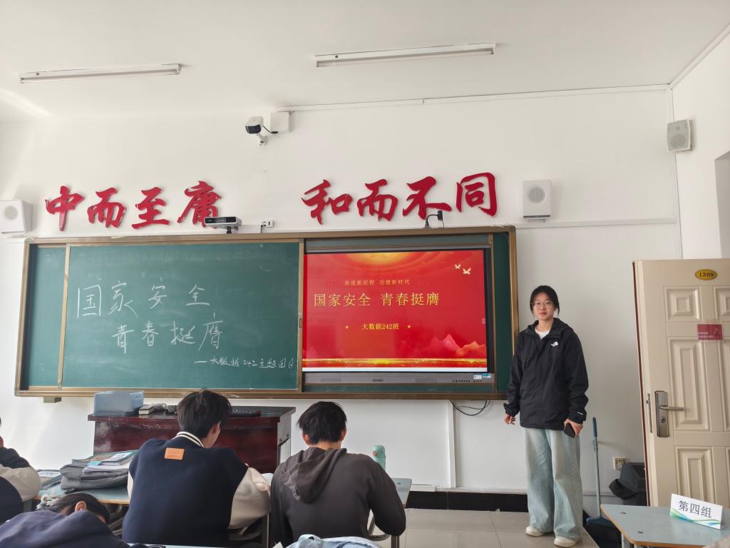 4月17日上午,大数据242班在一号教学楼1405教室召开“国家安全,青春挺膺”主题团会,本次团会由团支书王菁遥主持,大数据242班共38人参加。