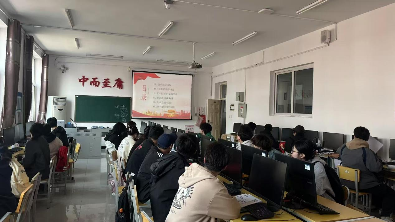 活动开始,团支书李馨雨先给大家观看了历史上关于五四运动的短片,让同学们切身地感受到1919年青年大学生们“外争主权,内除国贼”“取消二十一条”“还我青岛”的口号中炽热的爱国情怀。接着,她以生动鲜活的案例、深入浅出的讲解,带领大家重温五四运动的历史背景、精神内涵,最后,团支书李馨雨告诫同学们深入学习习近平新时代中国特色社会主义思想,从百年党史中汲取奋进力量,筑牢信仰之基。