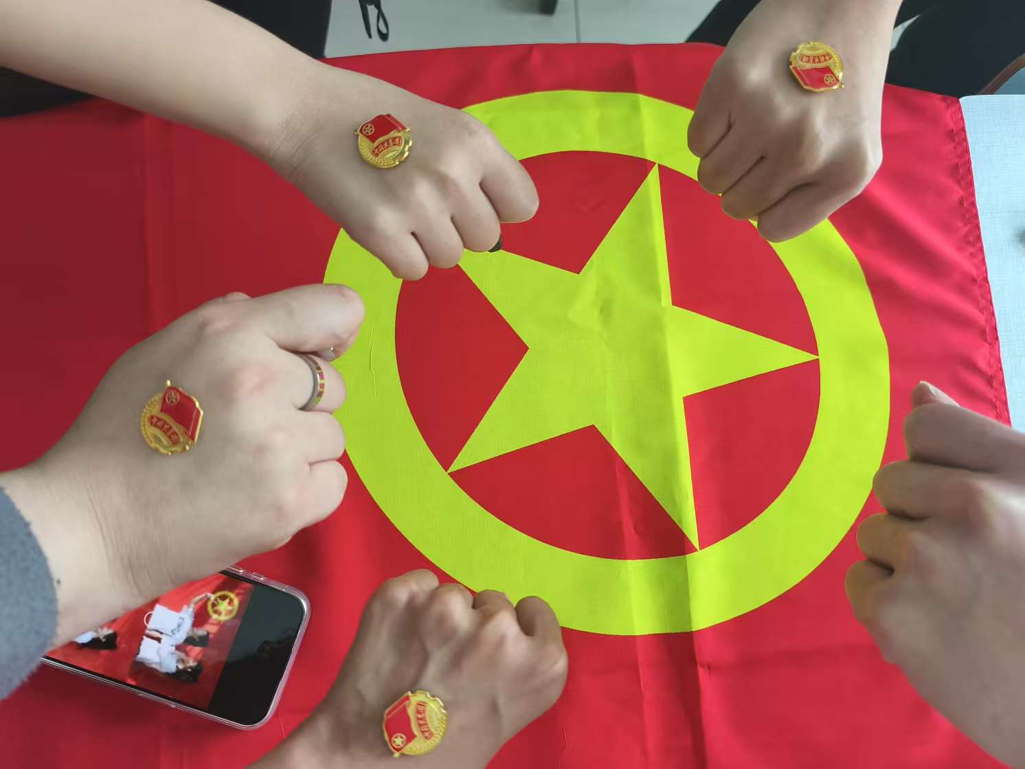 活动伊始,王依铭向同学们详细介绍团旗团徽的历史意义与象征内涵,强调团旗上鲜红的颜色象征革命胜利,黄色五角星及环绕圆圈象征中国青年一代紧密团结在中国共产党周围,团徽则是共青团的象征和标志,激励着每一位团员积极向上。随后,同学们有序参与合影。身姿挺拔,目光坚定看向镜头,展现出新时代青年朝气蓬勃的精神风貌,佩戴团徽,与团旗同框,合影过程中,同学们相互交流对共青团的认识与感悟,分享入团以来的成长与收获。此次活动不仅让同学们加深了对共青团的理解与热爱,更通过合影这种直观方式,强化了团员身份认同感与集体荣誉感。牢记入团誓言,践行团员使命,在学习和生活中发挥模范带头作用,以实际行动为团旗团徽增光添彩,为实现中华民族伟大复兴的中国梦贡献青春力量。