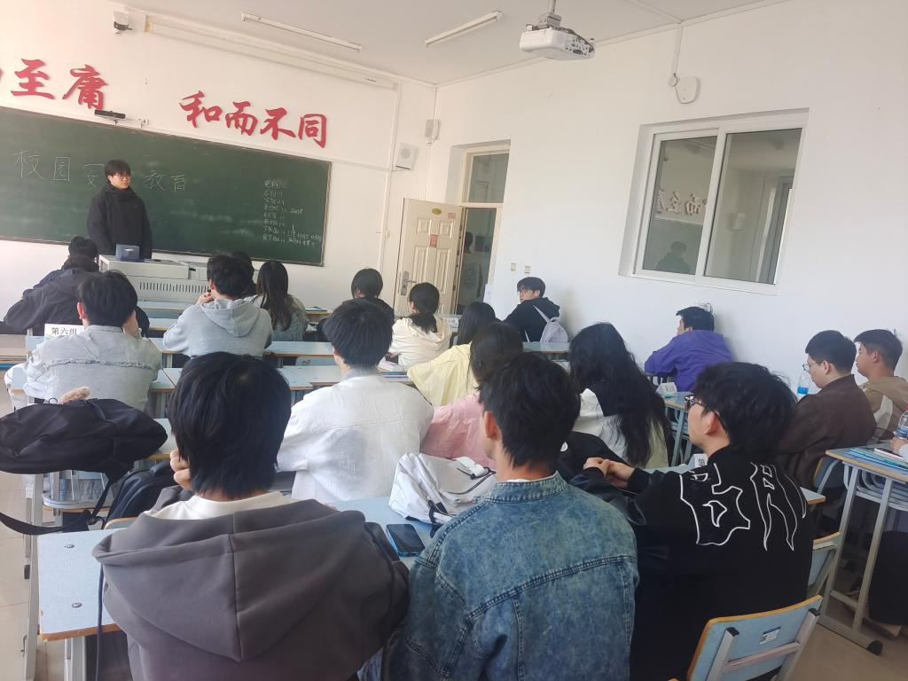 本次班会的目的是为进一步增强同学们的安全防范意识,提高自我保护能力,构建平安和谐的校园环境。班会伊始,毛班长以校园内外发生的真实安全事件为切入点,向同学们阐述了校园安全的重要性,瞬间吸引了大家的注意力,让同学们深刻认识到安全问题就在身边,不可掉以轻心 。随后,毛班长介绍到,在人身财产安全方面,通过分析常见的盗窃、诈骗手段,如网络刷单诈骗、冒充熟人借钱等,提醒同学们要提高警惕,妥善保管个人财物,不轻易透露个人信息;在消防安全环节,借助视频资料展示了火灾的严重危害,并详细讲解了灭火器的使用方法、火灾逃生技巧以及宿舍用电安全规范,强调严禁在宿舍使用违规电器;在网络安全板块,结合当下网络环境,引导同学们正确使用网络,不沉迷网络游戏,不信谣不传谣,警惕网络暴力和网络陷阱。最后,毛班长强调,校园安全无小事,每一位同学都要将安全意识牢记心中,从自身做起,从细节做起,养成良好的安全习惯。