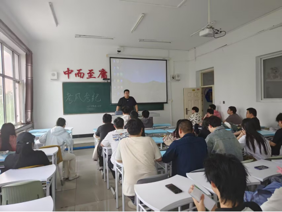 5月19日中午,为营造良好的学习氛围,强化班级学风建设,引导同学们树立正确的考试观念,大数据 221 班在一号教学楼A区1413教室开展“考风考纪”班会。