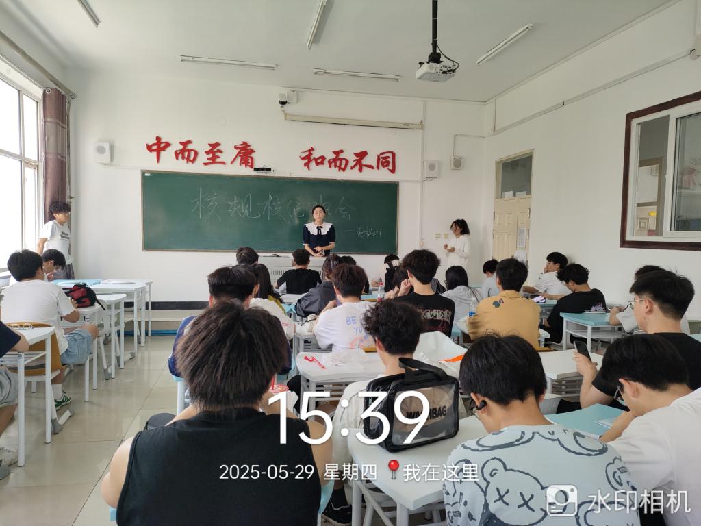 本次会议旨在进一步规范同学们的日常行为,营造健康、文明的校园环境。首先,黄金石老师以生动且严肃的话语点明了遵守校规校纪的重要性,强调校规校纪是维护校园秩序、保障同学们健康成长的重要准则。随后,针对班级中违反纪律的同学,黄金石老师严肃指出,校园是学习和成长的净土,吸烟不仅损害个人身体健康,还会对周围同学造成二手烟危害,同时违反学校的规章制度,破坏校园文明氛围。最后,黄金石老师详细解读了学校的各项规章制度,涵盖课堂纪律、考勤管理、宿舍规范、校园安全等多个方面。通过列举校园内的正反案例,让同学们直观地感受到遵守与违反校规校纪所带来的不同后果。
