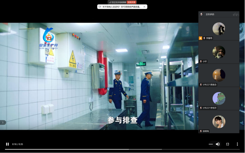 6月7日下午,计科221班在线上腾讯会议开展“安全生产月”主题宣传片观看活动。此次活动由团支书李馨雨主持,计科221班共46人参与。