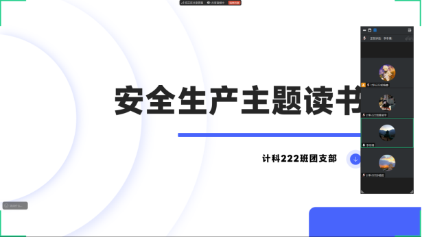 为了提升同学们对安全生产的重视程度,增强安全意识,丰富安全知识储备,信息学院计科222班于6月10日晚举行以安全生产主题读书活动为主题的团日活动。