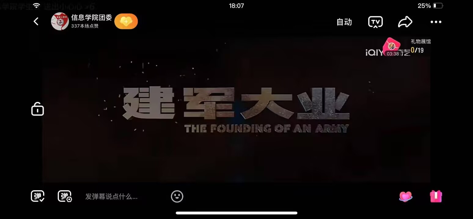 活动紧扣“铭记历史 砥砺前行”主题,信息学院团委提前规划,通过到梦空间的渠道广泛动员。7月7日当天,同学们准时登录线上平台,共同观看《建军大业》。影片以细腻镜头、震撼场景,再现革命先辈为民族独立浴血奋战的热血篇章,从南昌起义的雷霆之势,到三河坝战役的壮烈坚守,生动诠释信仰力量与担当。观影过程中,同学们被先辈们舍生取义的精神深深触动,弹幕区满是“致敬英雄”“吾辈当自强”的感慨,历史的厚重与青年的热忱交融传递。随后,进入线上交流环节,同学们开始分享感悟,有的提及先辈们以热血换山河,让大家懂得和平来之不易,更要坚定报国开始决心,有的聚焦影片中青春面孔,感慨青年从不缺担当,要更好的传承这份热血,以行动践行理想。最后,负责人强调“七七事变”是民族觉醒的号角,《建军大业》展现的革命精神,是激励青年奋进的灯塔,希望同学们以史为帆,将爱国情化作求知力、奋斗行,让理想信念在实践中闪光。
