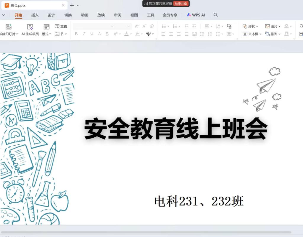 7月15日下午,电科232班利用腾讯会议召开安全教育班会。本次会议辅导员薛苗苗老师主持,电科23级共60人参加。