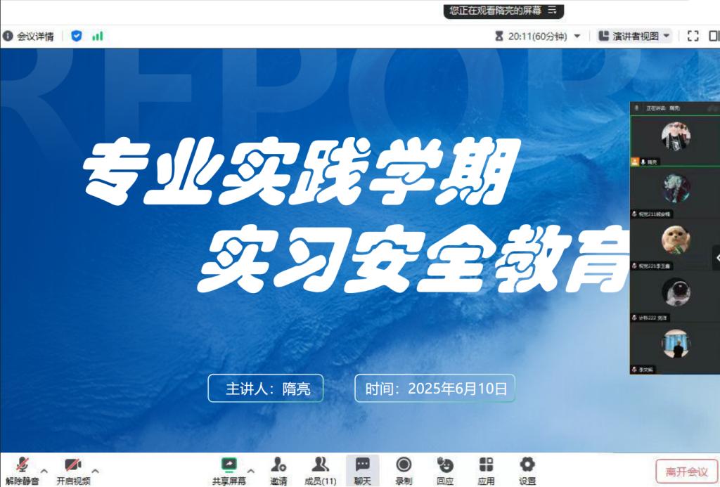 6月13日,生涯导师隋亮于实践学期前夕,通过线上腾讯会议的形式与生涯学生开展了一次专业实践学期实习安全教育会,旨在确保学生们能安全、高效地完成实习任务,提升专业实践能力。