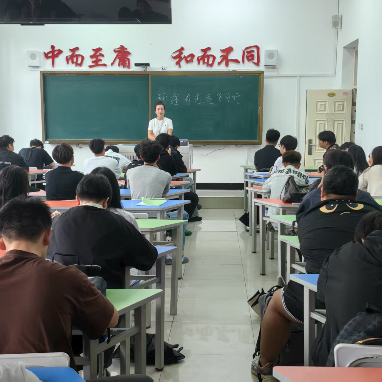本次班会的目的是帮助同学们明确考研与考公的目标,科学规划备考路径,建立积极的备考心态。会上,薛老师结合自身经验,从院校选择、专业匹配和备考时间规划三个维度进行了系统讲解。她特别强调了信息搜集的重要性,提醒同学们要关注目标院校的招生简章和历年分数线,并充分利用学校的图书馆、数据库等学习资源。随后,针对公务员备考,薛老师介绍了考试科目、岗位选择策略以及备考时间安排。她建议同学们尽早了解各类岗位要求,结合自身优势合理定位,并注重时政积累和申论写作能力的提升。此外,薛老师还从备考策略、时间管理、心态调整等方面为同学们提供了建议。她鼓励大家制定合理的学习计划,保持规律作息,在备考过程中相互支持、共同进步。最后,薛苗苗老师鼓励同学们要树立信心,脚踏实地,以积极的心态迎接考研和考公的挑战。