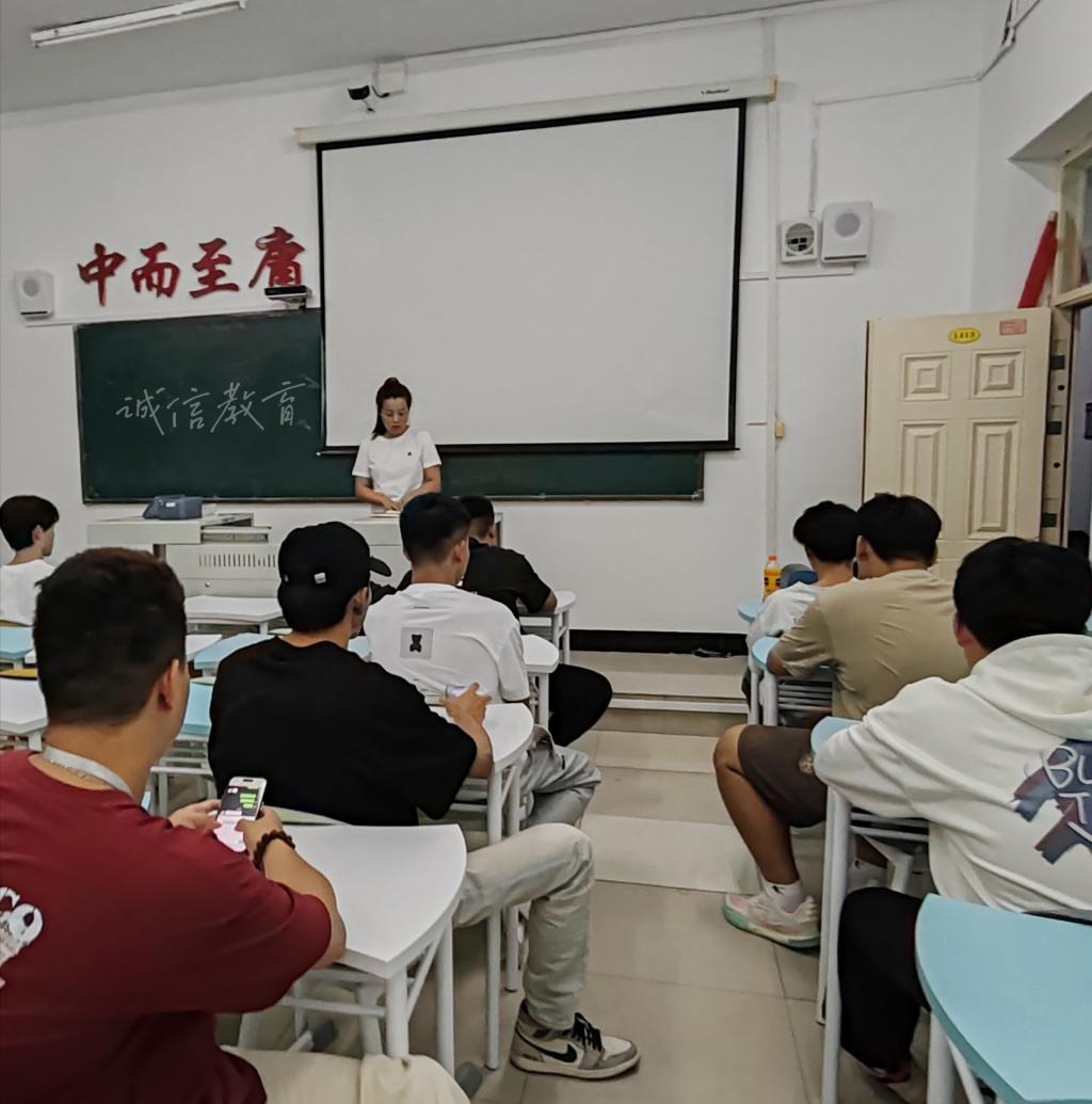 5月19日上午,动画221班在一号教学楼C区1413教室,参加由辅导员薛苗苗主持的诚信教育主题班会,此次班会旨在强化同学们在即将到来的期末考试中的诚信意识。