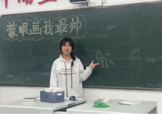 活动中,主持人首先详细讲解规则,需在蒙眼状态下,3分钟内完成“自己最帅的样子”的创作。随后选取几位同学上讲台佩戴好眼罩,凭借手感与想象勾勒轮廓、填充细节。