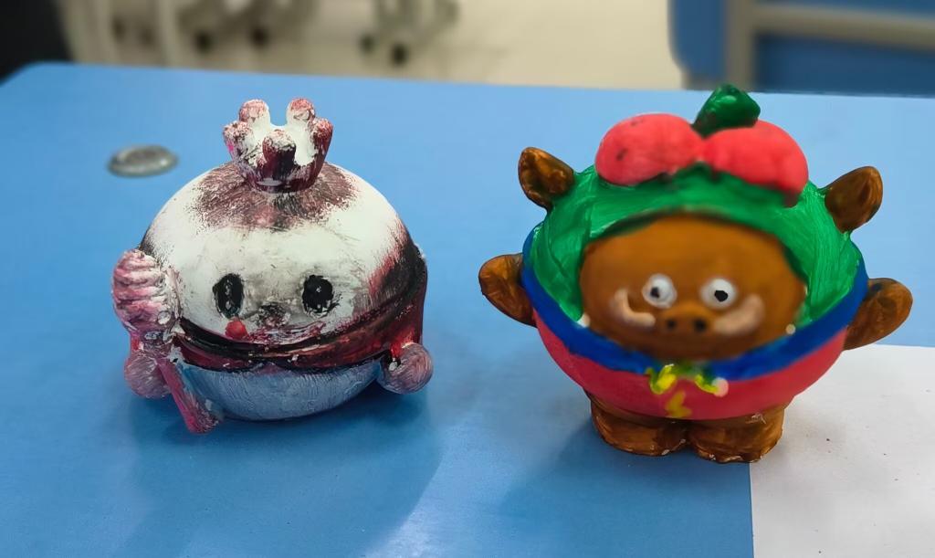 首先,活动现场布置温馨雅致,各类造型可爱的石膏娃娃整齐排列,卡通人物、动物形象、经典IP等款式一应俱全,满足了同学们的不同喜好。王烁同学提前备好丙烯颜料、画笔、调色盘等工具,为大家提供了充足的创作保障。随后,同学们有序挑选心仪的石膏坯体,或独自构思,或三五成群交流创意。调色、勾勒、填充,大家沉浸在创作的乐趣中,原本朴素的石膏娃娃在笔尖下逐渐变得鲜活灵动。有的被绘制成色彩斑斓的童话形象,有的融入潮流元素彰显个性,每一件作品都承载着独特的巧思。最后,活动现场还设置了作品展示区,同学们纷纷与自己的作品合影留念,分享创作心得,欢声笑语弥漫在活动中心的每个角落。