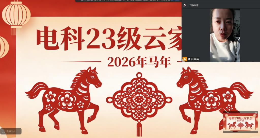 2月24日下午,辅导员老师通过线上形式,分别为计科25级、电科23级、专升本25级依次召开云家长会、云班会,三个班级全体学生及计科25级、专升本25级学生家长参与会议,会议由辅导员薛苗苗主持,共计300余人参加。