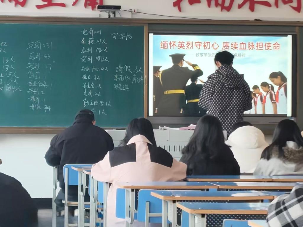 在各教室里,主题团日活动有序开展。全体同学整齐就座,在庄重的氛围中,开启红色学习之旅。在红色经典诵读环节,同学们齐声朗诵红色诗词、经典篇目,用铿锵有力、饱含深情的声音,诉说对革命先烈的深切缅怀,传递爱国情怀,朗朗诵读声回荡在教室中,凝聚起青春奋进的力量。随后,在英烈故事分享环节,同学们主动走上讲台,讲述革命先辈为国家独立、民族复兴浴血奋战、无私奉献的感人故事,重温那段波澜壮阔的红色历史。最后,同学们纷纷表示,将铭记历史、传承英烈精神,把爱国之情转化为学习动力,以更加饱满的状态投入到学业中。