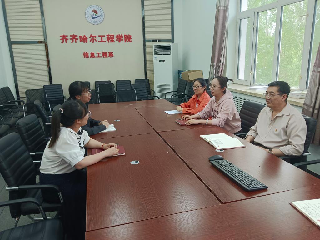 为庆祝中国共产党成立103周年,贯彻落实《黑龙江省普通高等学校基层党建五年规划(2023-2027)》要求,加强党员教育管理,切实把思想和行动统一到推进学校中心工作、推动学校教育事业高质量发展上来,根据校党委组织部关于在“七一”期间开展“千堂党课进支部”活动的通知要求,7月5日下午,在一号教学楼2304,信息工程系计电教师党支部书记郭伟伟做“学习贯彻习近平总书记关于党的建设的重要思想”主题党课,党支部全体党员参加。
