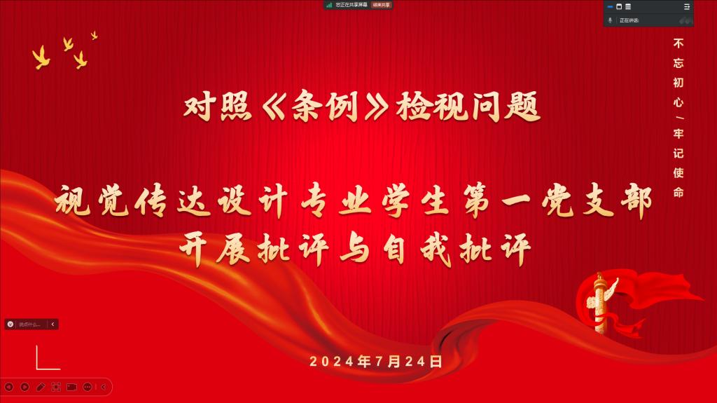 7月24日,信息工程系视觉传达设计专业第一学生党支部召开了支部党员大会。此次会议由党支部书记于悦老师主持,目的是为了深入学习纪律处分条例,强化纪律意识。