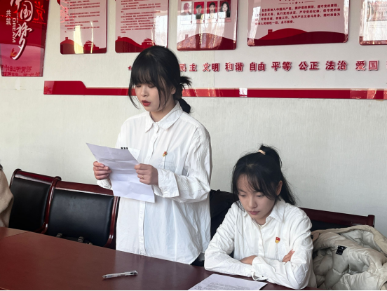 会议开始,史云辉委员宣布大会正式开始,并明确会议议程,审议李肖雯、孟得洋、王茜三位同志的预备党员转正申请。随后,三位同志分别陈述了预备期间的学习、工作情况及思想认识,同时表达了对党组织的忠诚和未来的规划。史云辉委员基于三位同志的汇报,对其预备期间的表现进行了评价,既指出了成绩和进步,也客观分析了存在的不足。李肖雯、孟得洋、王茜同志针对提出的问题,表达了改正的决心和后续的行动计划。各培养人的老师对三位预备党员的汇报进行了总结,提出了针对性的建议,并鼓励他们继续进步。经过支部大会的充分讨论和审议,一致同意李肖雯、孟得洋、王茜同志转为中共正式党员。会议最后,于悦书记发表讲话,强调全体党员需深入学习党的二十大精神,严格遵守党章,不断提升个人素质,以实际行动践行党员责任,为学校发展及学生成长贡献力量。他特别寄语新转正的党员,希望他们能在新的起点上,发挥模范作用,争做新时代的优秀党员。