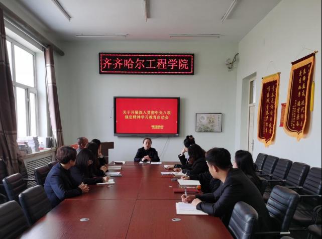 会上,李野书记传达了《中共齐齐哈尔工程学院委员会关于开展深入贯彻中央八项规定精神学习教育的实施方案》精神。她着重指出,此次学习教育活动需紧扣主题,大力弘扬“教育家精神”、“亮剑精神”、“艰苦创校、课程立校、文化治校、精神兴校、信仰传校”和“敢为天下先”的优良作风。引导党员提高思想觉悟,确保学习教育融入日常工作、形成长效机制。