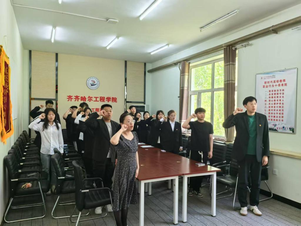 理论学习后,学院党委副书记刘铭炜为毕业生党员送上殷切寄语。她鼓励同学们在步入社会后,积极投身基层党建、志愿服务与行业创新实践,将课堂所学转化为服务社会的实际行动,始终牢记党的根本宗旨。随后,在党委组织委员史云辉的领誓下,全体毕业生党员庄严起立,重温入党誓词。铿锵有力的誓言在会场回荡,字字千钧,进一步坚定了党员们的理想信念,强化了初心使命。