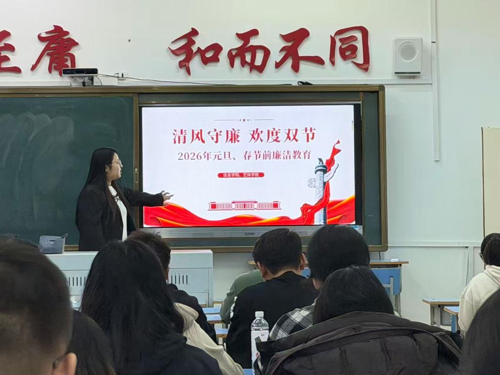 为深入贯彻落实全面从严治党要求,切实筑牢教职工廉洁自律思想防线,营造风清气正的节日氛围,在2026年春节、元旦双节来临之际,信息学院于2025年12月29日下午在一号教学区1403召开双节廉洁教育专题会议。学院全体教职工参加会议,会议由学院党委书记李野主持。