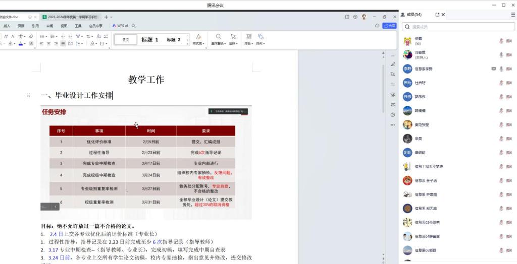 2024年2月1日下午,信息工程系全体教师通过线上会议的方式召开了“统一思想,靶向审核评估”工作会议,会议由信息系党总支书记李野主持。