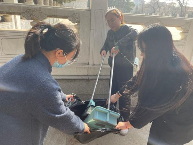 首先,孙晓芳主任与各位参加教师制定方案,并指出:“西满陵园是一座建园较早,知名度较高,安葬安放烈士较多的陵园。陵园共安葬安放革命烈士608位,其中包括抗日战争牺牲、解放战争牺牲、抗美援朝、社会主义建设和改革开放时期牺牲的烈士。这些数字宛如当年烈士们经历的硝烟一般,历历在目,所以我们今天要怀着敬畏之心向烈士们置于崇高的敬意。”随后,计算机与电子教师党支部的教师们开始清扫烈士陵园,范围包括过道垃圾、草坪垃圾、烈士墓碑以及各处的垃圾桶,教师们不辞辛苦的清理了西满烈士陵园的大部分垃圾,让烈士们的安身之所更加的干净、整洁。最后,孙晓芳主任表示:“无论是保家卫国的抗日战争,还是守卫边疆的抗美援朝战争,这些在战争中死去的烈士无一不是为了中国如今的盛世,而现在,我们正活在烈士们竭尽全力创造的世界里生活着,我们也要反思自己,在当今社会创造自己的价值,为了我们的下一代。”本次志愿活动圆满结束。