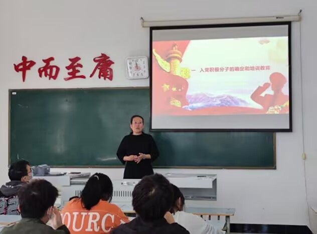 10月12日,信息工程系入党积极分子培训班在1#1401教室进行集中授课,本次授课内容为中国共产党发展党员流程,由计电学生党支部书记张雷蕾老师主讲,共27人参加本次培训。