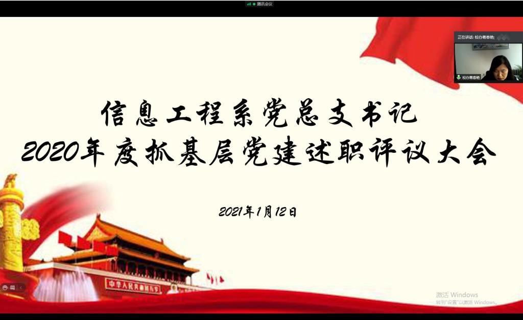 1月12日下午,信息工程系使用腾讯会议召开线上党总支书记述职评议会议,会议由信息系党总支副书记孙晓芳主持,信息工程系党总支全体党员参加。学院党委委员、副院长蒋春艳、组织部郑洪波、信息工程系主任张静列席参加了会议。