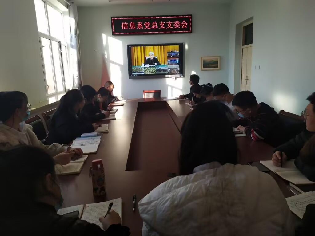 11月13日下午,信息系党总支在1#2304组织全体党员,对《学习贯彻党的十九届五中全会精神中央宣讲团宣讲报告会》的视频进行了学习,报告会以观看视频形式举行,信息系党总支设立会场组织收听收看,信息系党总支书记任鹏飞主持,信息系党员全体参加。