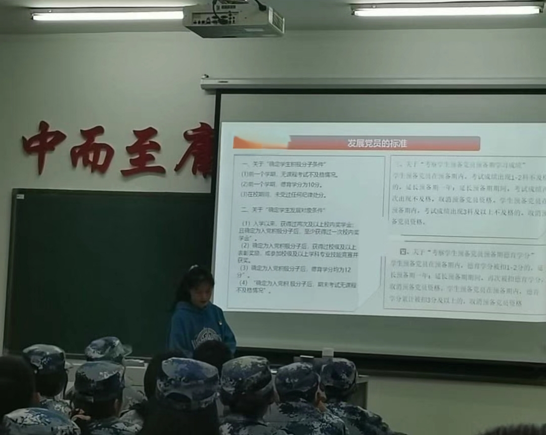 讲座从“党的历史、入党动机、入党流程、入党的条件和考查、入党的意义”五个方面为同学们进行了详细解读。首先,介绍了中国共产党成立的历史条件、中国共产党的发展阶段;其次,说明了入党条件,入党阶段,使同学们对中国共产党有更深入的了解;随后,详细介绍了什么是入党动机、入党动机类型及原因分析、为什么要端正入党动机 、怎样端正入党动机,早日加入中国共产党等一系列问题。